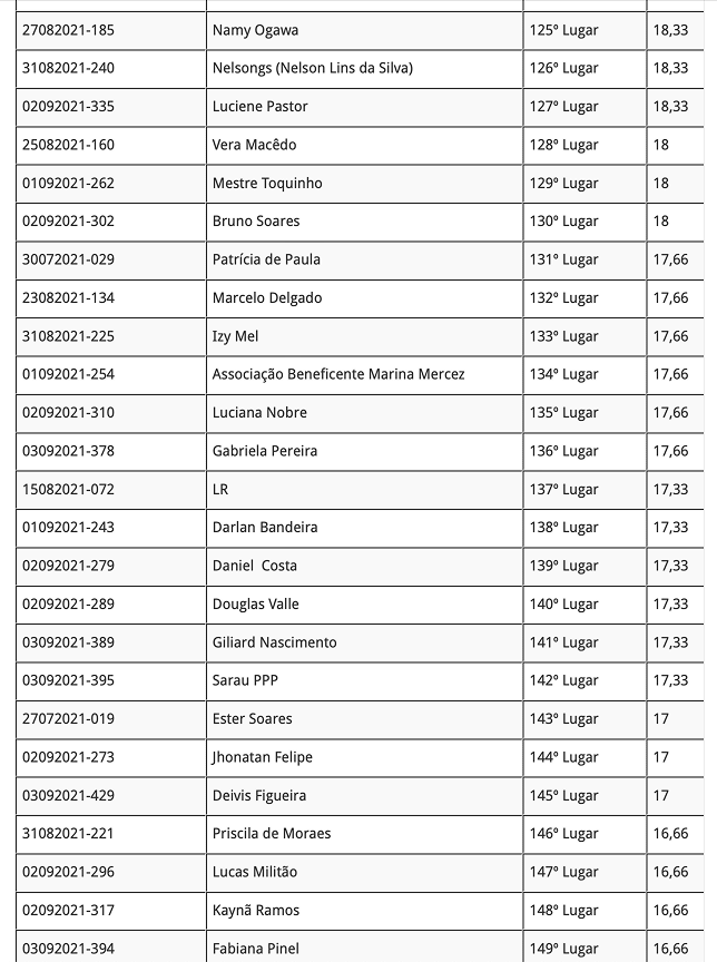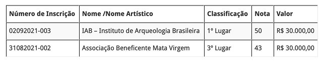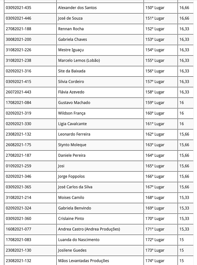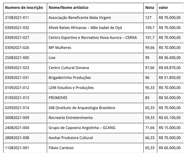 Lei Aldir Blanc – Chamadas publicas 001, 002 e 003 – Resultado Final