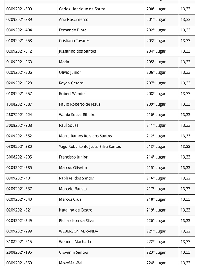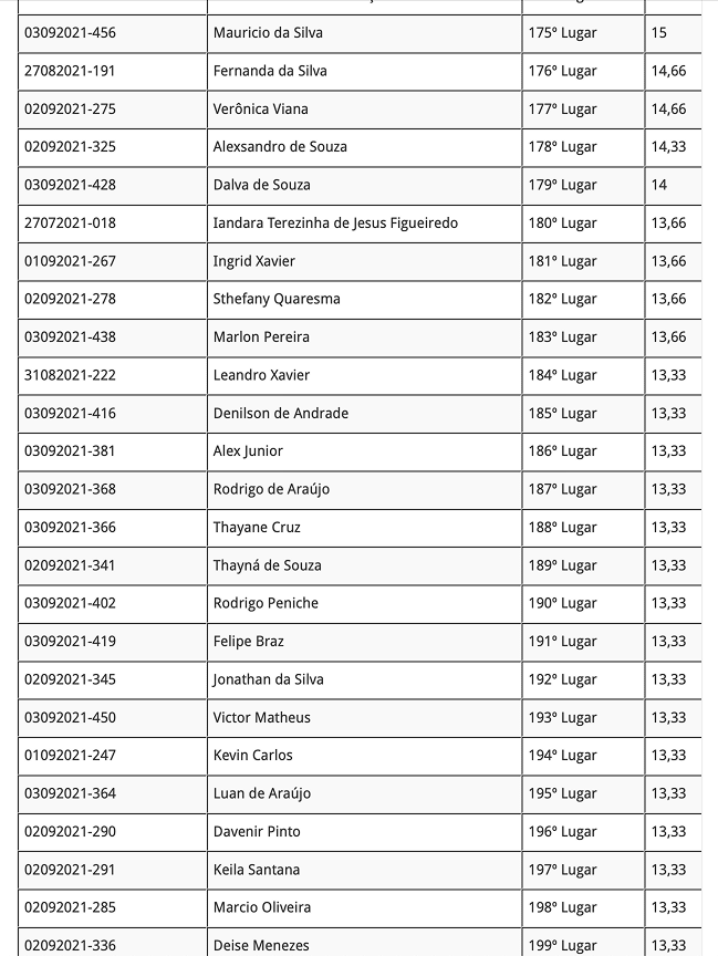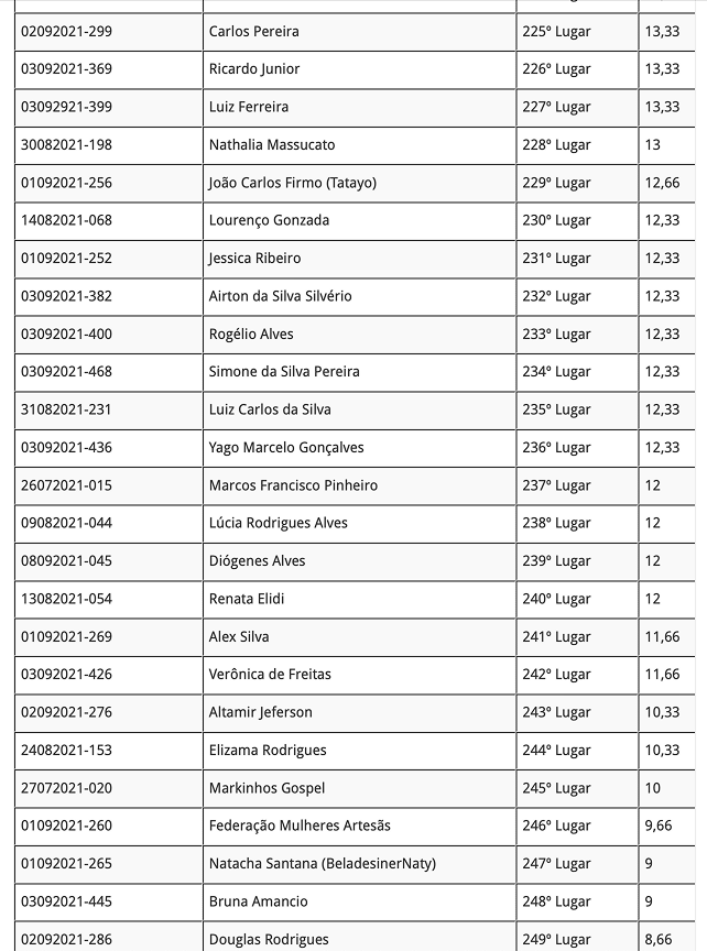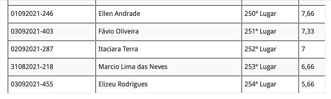Lista dos Reclassificados: